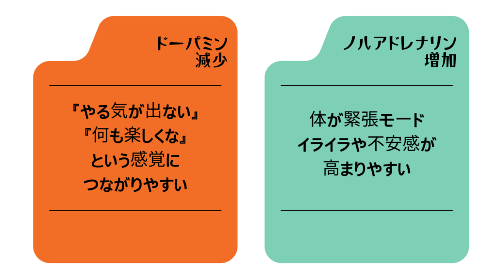 これが「気分は落ちているのに、体は張り詰めている」という状態の一因と考えられます。