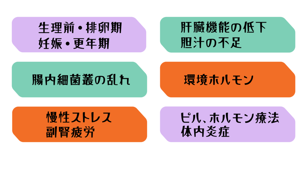 (生理前・更年期・ピル・肝機能低下・腸の問題・環境ホルモンなど)